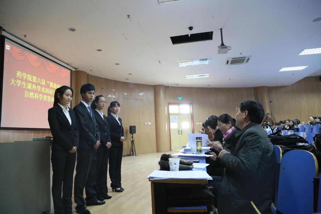 本次答辩赛的规则是各个参赛团队按照抽签的顺序依次进行陈述与答辩,每个团队有三分钟的自由陈述与五分钟的评委提问时间,答辩后由评委老师进行打分。在答辩过程中,各位选手语言清晰、逻辑严谨、专业性强,赢得了在场老师与同学们的阵阵掌声。本届挑战杯作品的创新性和实用性非常突出:如人文社科类的有针对郑州龙子湖高校区女大学生安全问题的调查研究,有关于大学生志愿者服务常态化机制建设的调查研究;自然科学类的有关于中药性能的探究,有关于中药养生的探索,也有对中药的器具进行的研发与改进。这些作品让人耳目一新,获得现场专家的好评。