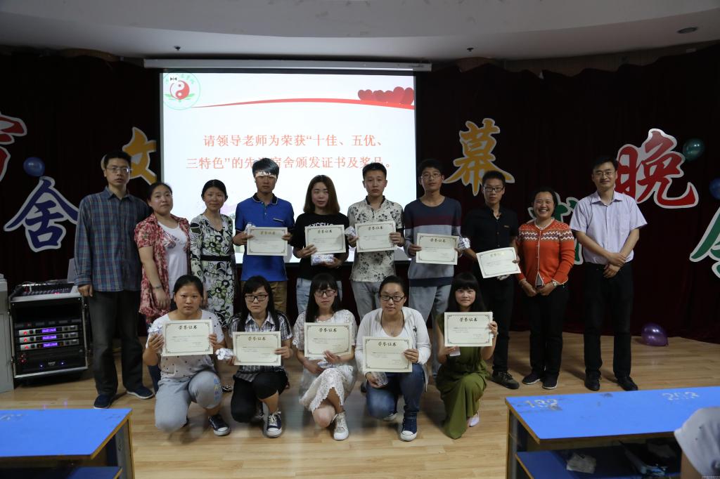 领导老师为宿舍文化节活动期间表现优秀的“十优”、“五佳”和“三特色”宿舍颁发了奖状和奖品。