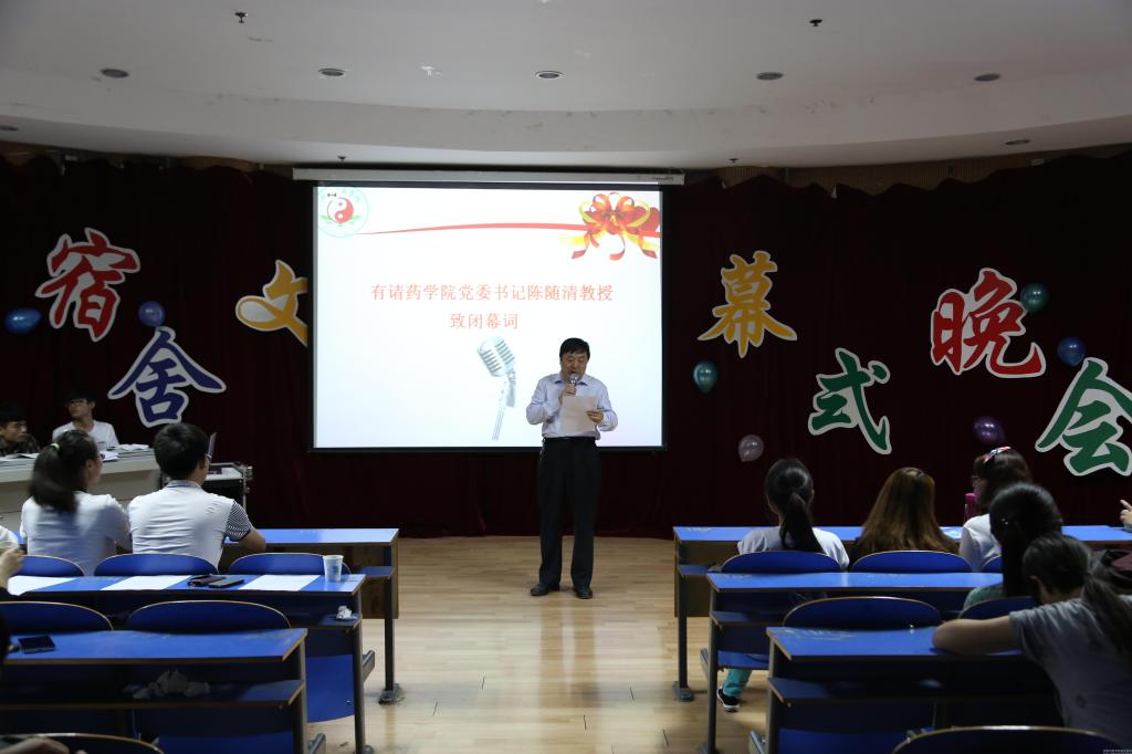 党委书记陈随清、副书记杨文胜、副院长卢萍、崔瑛、学工办全体辅导员和全院师生代表一起共享宿舍文化节闭幕式视听晚宴。