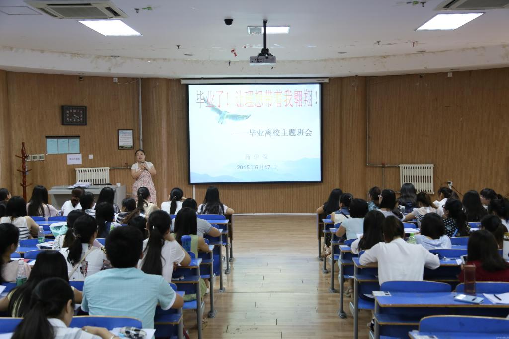 在四楼多功能厅,毕业班辅导员高巍老师以“毕业了!让理想带着我翱翔!”为主题举行了毕业班会。大学生活即将画上圆满句号,回忆起四年的经历,同学们都感慨万千。即将离开药苑的同学们对未来也充满了憧憬,有些同学说想继续深造,还有的同学说要支援西部,使自己得到更全面的锻炼。