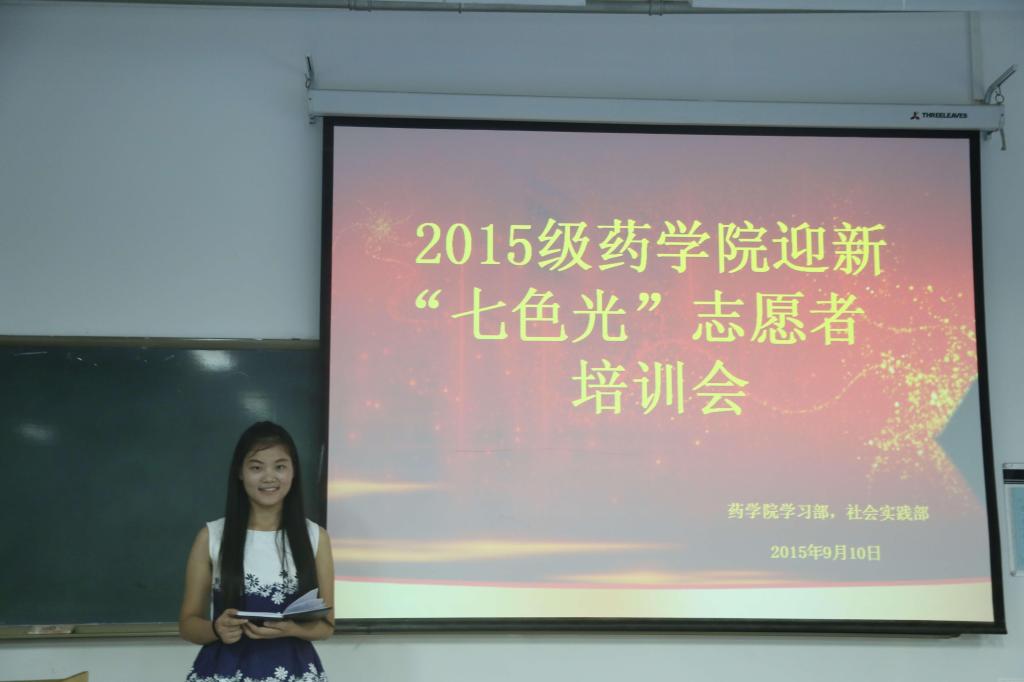 七色光迎新志愿者培训会”。社会实践部与学习部成员及院各专业志愿者参加了本次的培训活动。