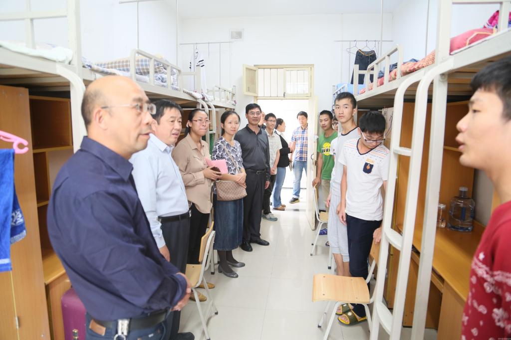 党政领导班子携学工办老师到新生宿舍走访慰问,深入了解新生的生活情况。