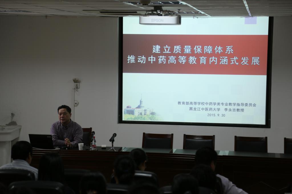 在专题讲座中,李永吉教授从《本科中药学类专业教学质量国家标准》研制历程,《本科中药学类专业教学质量国家标准》制定及认证工作意义,《本科中药学类专业教学质量国家标准》主导思想解读,认证准备工作中应注意的问题等几个方面对中药学专业认证工作进行了深度解读。
