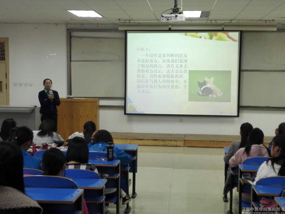 本次系列讲座分别由杨文胜书记和杨晓老师分班级为大家开展女生讲座,讲座中包含大学女生在多方面需要的防骗、防盗、防身的安全措施。目前社会上还存在违法犯罪现象,女生遭到不法分子侵害的情况也时有发生,大学生很有必要学会正确认识遇到的人和事,明辨是非,区分真善美和假恶丑,提高预防各种侵害的警惕性,消除对危险的麻痹和侥幸心理。老师提醒我们一定要树立自我防范意识,掌握一定的安全防范方法,增强自身的防范能力,使自己在遇到异常情况时,能够冷静、机智、勇敢地去应付。杨晓老师告诉同学们,女生要“自尊,自爱,自立,自强”,无论在什么紧急的情况下,一定要记住:生命第一。老师举了很多发生在我们学校和周边学校的女大学生受骗的事例,增加大家的防范意识。杨文胜书记则向女生展示了女性的魅力,告诉女同学们“没有丑女人,只有懒女人”,并告诉大家“修养是人生的第二张身份证”,让同学们意识到要做一个内外兼得的新女性。