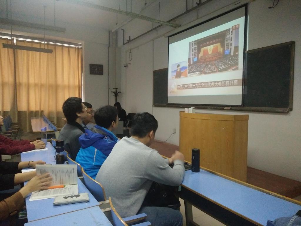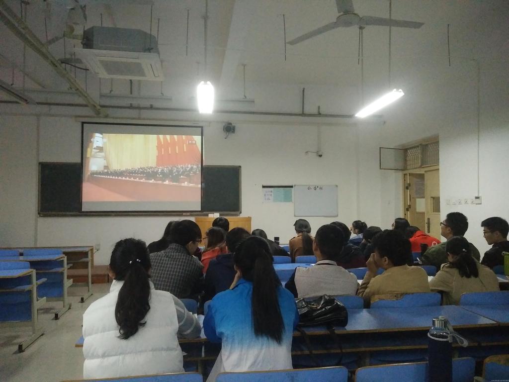 各学生党支部书记、学生党员、入党积极分子及学生干部在教学楼A513集体收看了开幕式盛况。与会人员认真聆听了习近平同志在开幕式上作的报告。