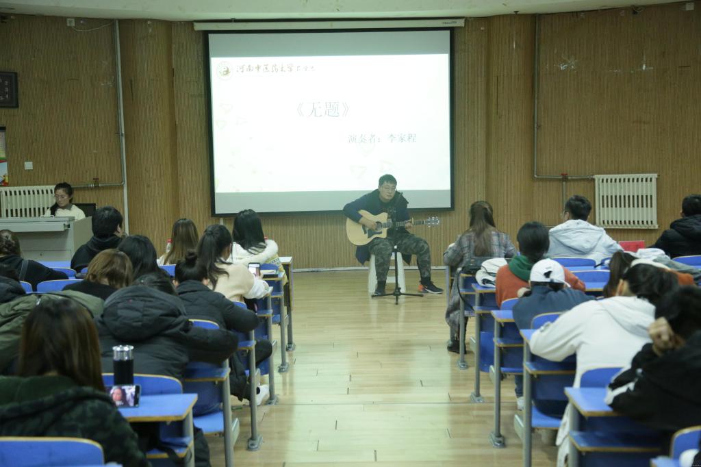 比赛中,大家积极参与,各展其能,活动期间飘扬着欢快的吉他声、激荡人心的古筝声、低沉的萨克斯和悠扬的箫声,比赛形式多样,精彩纷呈。经过激烈的角逐,2019级中药制药班黄澜等同学的古筝合奏《战台风》脱颖而出,获得了本次比赛的第一名。最后,由大学生艺术团器乐部副部长张雨嫣和吉他社社长周铭豪对古筝、吉他等演奏进行了专业的点评,对参赛选手的专业素养与精彩表现给予了肯定和鼓励。