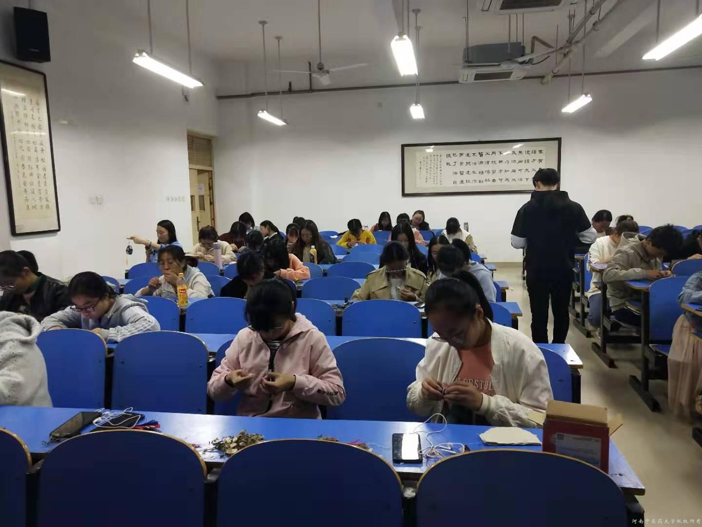 社团中药艺术品协会于教学楼A537教室,举办制作传统香囊培训活动。