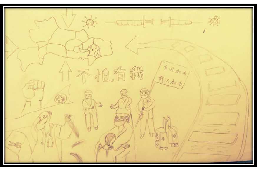 疫情面前,有人不畏艰险勇闯前线;有人默默奉献捐献物资;而普通的我们作为当代大学生,更应当充分发挥文化宣传优势,助力打赢这场疫情防控战,用绘画作品来表达对前线的支援,并寄托希望:望早日抗“疫”成功!