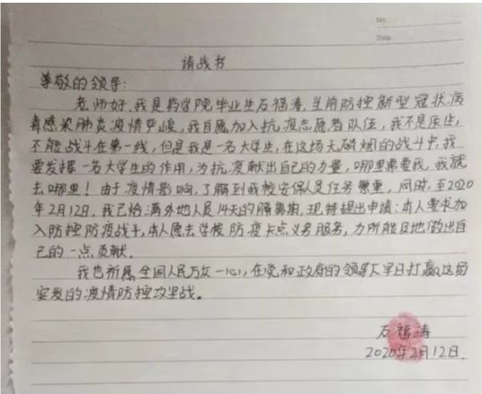 石福涛学长为我们捐赠医用品,保障大家的安全,心系母校常怀感恩之心,又请战加入了学校防疫站点的志愿服务活动。用自己的爱心和行动,感恩和回报母校。(编辑/李旭宁,审核/刘雅琳 高巍)