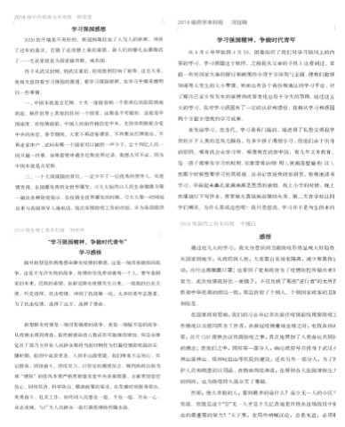 2018、2019级全体同学开展,同学们使用“学习强国”平台进行连续五日的线上学习,并按时记录、提交自己的学习感悟。以班级内部投票和2018级、2019级相互评选的方式从每个班级中优选三份作品,然后再由评委们进行评审打分,最终确定一等奖、二等奖、三等奖及优秀奖的获奖名单。