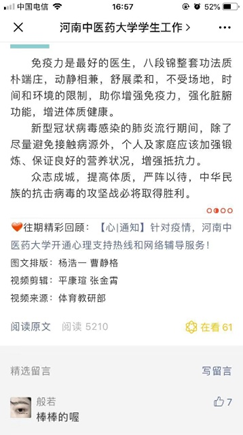 微博上公众号上谣言流言病毒式扩散,既是对广大党员人民群众鉴别力、抵抗力、免疫力的一份考验,也是对我们坚持党的领导,打赢舆论战、守住意识形态阵地的迫切需要。广大媒体人,公众号运营者,新媒体战线上的同行们,我们要充分发挥媒体人在舆论阵地的引领作用,更应该坚守自己的初心,向我们奋斗在抗击疫情一线中医药前辈们学习,向我们广大中医药学子们的先进事迹学习。