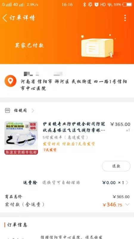 这段时间我看到的我记住的,我感动得我彻夜难眠的那些人,那些事,那些感悟都将成为人生最宝贵的财富。每天看着新闻听着广播,与亿万同胞一样,我们的心和前线工作人员的心连在一起。现在各地医院医用物资都比较紧张,个人力量微小,于是和师姐师兄们一起决定捐赠医护用品。通过与南阳市中心医院和信阳市中心医院的联系,向其捐献了护目镜10副,医用免洗手消毒液19瓶,运输路途可能艰难,但是大家的关心和支持一定更加宝贵!