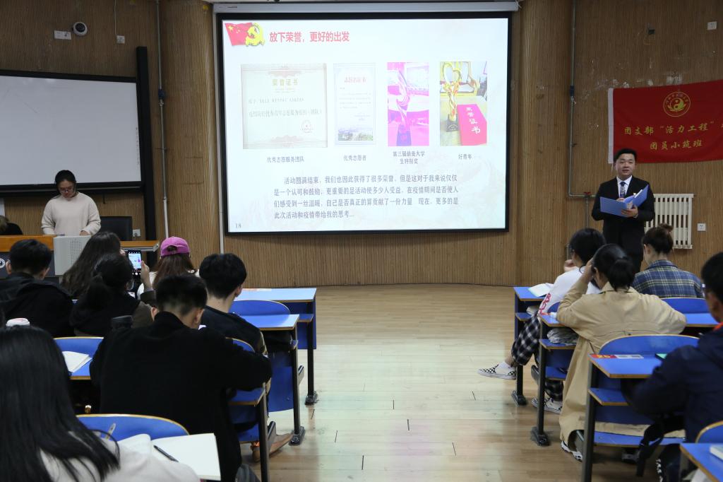 在本次团日活动中,*七猫小说 抗疫青年代表汪纪奥以《见行,践行》为题分享了自己的抗疫故事,并将自己和同学一起组织的“青春众志,教育守护成长”线上义务辅导活动的情况作了详细介绍,向同学们展示了疫情期间的大学生力量。随后,全体参会人员一起观看抗疫纪录片《人间世•脸庞》,回顾抗疫一线的感人瞬间。镜头下,一张张真实的面孔,带领同学们更深刻地感悟疫情中的奉献与大爱。