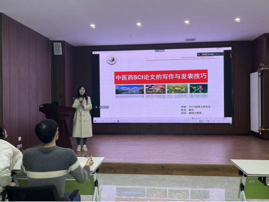本网讯(图文/王涵嫣)为深入学习贯彻党的十九届六中全会精神,全面培养和提升我院研究生和本科生的科研创新精神和学术表达能力,*七猫小说 于2021年12月1日在远志学堂举办了第2期“硕博开讲了”活动。本次活动严格遵守常态化疫情防控要求,采取线上和线下相结合的方式进行。*七猫小说 党委副书记,本草书院党委副书记、副院长刘雅琳,辅导员张艳丽、全体药院研究生班委、研会及助理团成员40余人参与线下活动,我院100余名研究生及本草书院同学以腾讯会议直播形式参与线上活动,活动由研究生辅导员秦中朋主持。