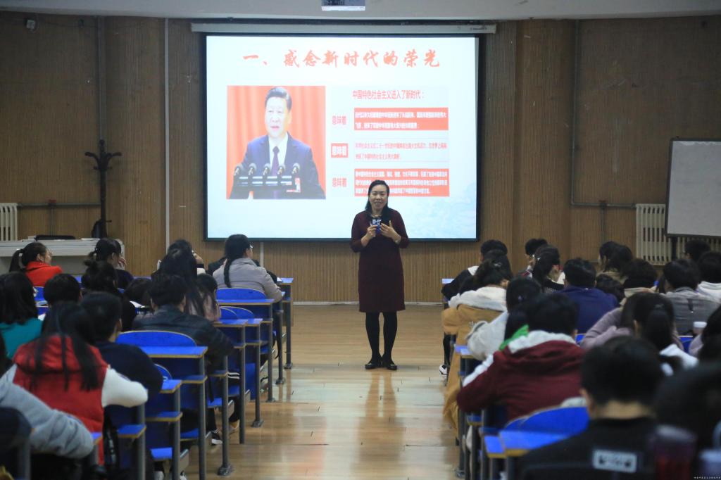 讲座中,刘老师指出习近平总书记在十九大报告中对青年寄予了厚望,强调了青年“生逢其时,重任在肩”的历史使命。接着刘老师从感念新时代的荣光、积蓄新征程的力量、放飞新起点的梦想三个方面解读了党的十九大精神,告诫同学们梦想就在前方,要以青春之我成就青春梦。