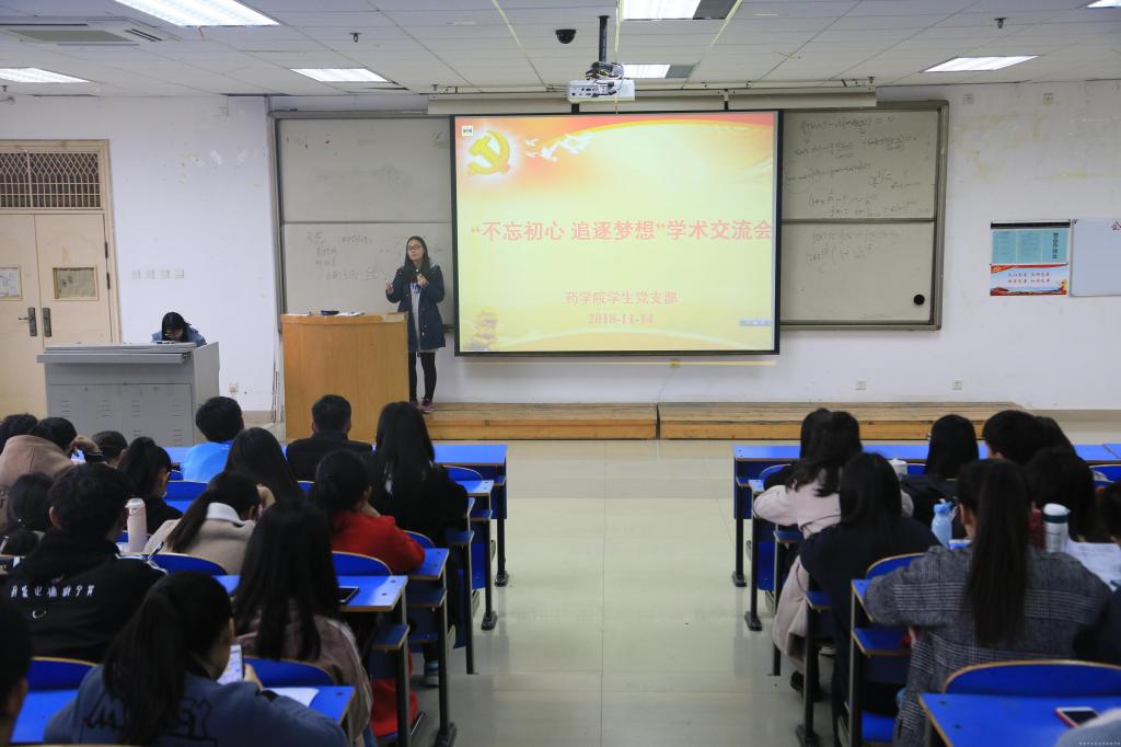 为深入贯彻学习十九大精神,加强学生党支部成员的学术思想教育,2018年11月14日,*七猫小说 于三楼阶梯教室举办了“不忘初心,追逐梦想”学术交流会,*七猫小说 研究生党支部部分优秀学生党员代表、国家奖学金获得者马蕊、蒋亚南、康乐及本科生国家奖学金获得者王芳芳为主讲人。