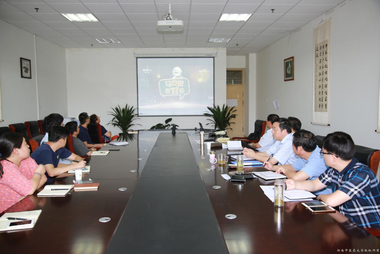 会上,全体人员首先观看了《马克思是对的》第一集《你好马克思》。随后,陈随清书记传达了学校党委《关于深入学习贯彻习近平总书记在纪念马克思诞辰200周年大会上重要讲话精神的通知》精神,刘雅琳副书记带领大家共同学习了习近平总书记在考察北京大学和在马克思诞辰200周年大会发表重要讲话的有关内容。
