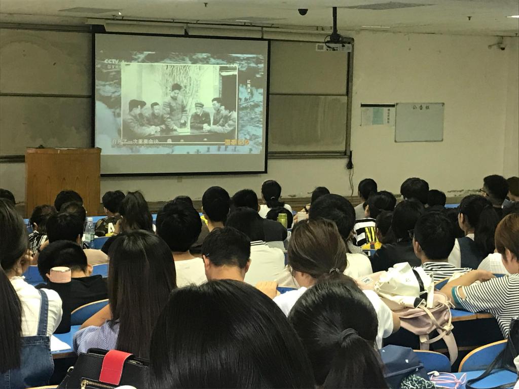 在场师生认真观看视频
