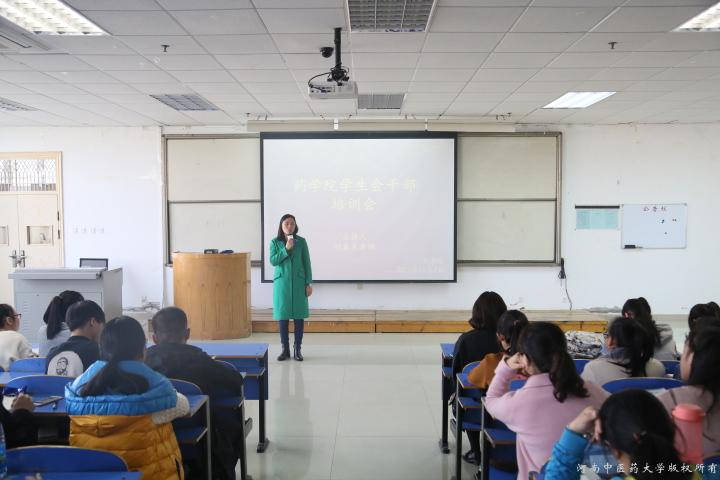 会议伊始,胡老师从思想道德、学习能力、组织能力、社交能力和表达能力等方面对学生会干部应具备能力进行了介绍,并指出作为干部要明是非、辨对错、肯努力、敢创新,在工作上要以身作则,不仅要处理好工作与学习的关系,也要处理好自身与他人的关系。随后,胡老师从自身经历出发要求学生会干部积极锻炼自我、充实自我、完善自我,提高自身综合素质,更好为药苑学子服务。最后,身体是革命的本钱,胡老师也建议大家应该积极锻炼身体,始终保持旺盛的工作精力。