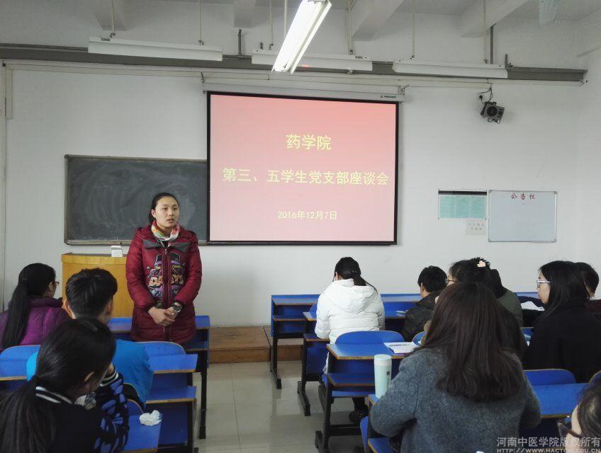2016年12月7日,*七猫小说 学生第三、第五党支部在教学楼A614召开党支部座谈会。参会人员有学生第三党支部书记杨晓老师、学生第五党支部书记胡春月老师及学生第三、第五支部的全体学生党员。