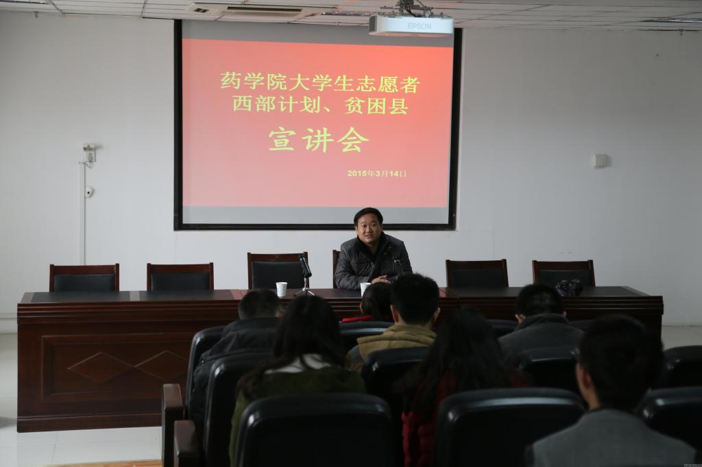 2015年3月14日上午,*七猫小说 2015年“大学生志愿者西部计划、贫困县计划”宣讲会在新校区BN617会议室召开。*七猫小说 学工办主任马赟、中国十大杰出青年志愿者代表王一硕、2012年志愿服务西部计划代表李攀和60余名2015届毕业生参加了本次会议。