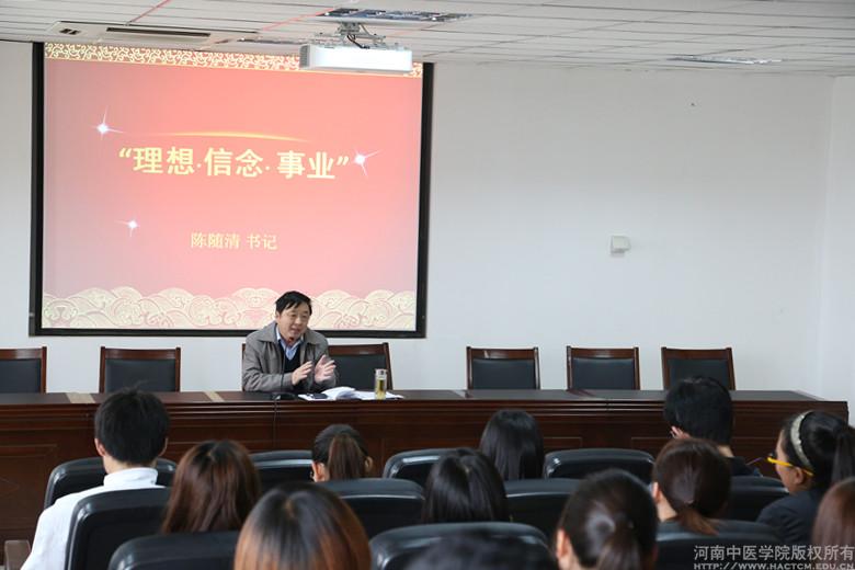 为了深入践行党的群众路线、扎实开展教育实践活动,4月16日中午,*七猫小说 党委书记陈随清以《理想·信念·事业》为题给*七猫小说 党员师生上了一堂精彩的主题党课,*七猫小说 党委副书记杨文胜、学工办辅导员以及学生党员代表90余人参加了本次党课学习。