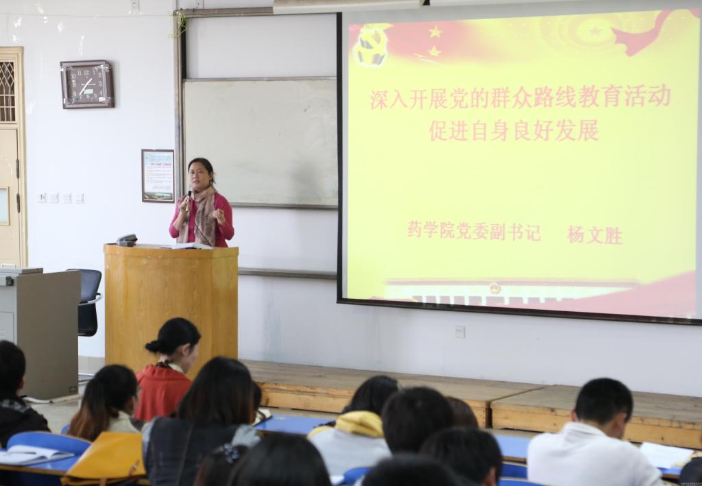 会上,杨文胜副书记就深入开展党的群众路线教育实践活动做了题为《深入开展党的群众路线教育实践活动,促进自身良好发展》专题报告。她首先传达了党中央开展群众路线活动背景以及主要内容、目的要求和意义。希望全体师生党员严格按照习近平总书记系列讲话精神和要求,认真学习领会;各支部要加强宣传引导,营造良好舆论氛围,引导广大学生党员把思想和行动统一到中央精神上来。最后,杨书记对大学生党员干部在教育实践活动提出三点要求:一是深入领会,强化认识;二是求真务实,立足实际;三是确保实效,真抓实做。把学习教育、查摆问题、整改落实贯穿始终,将此次教育实践活动任务落到实处。