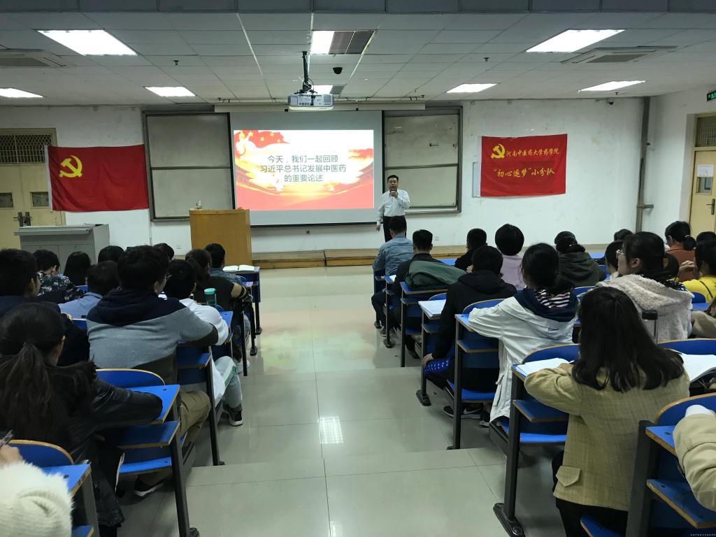 (文/克迎迎,图/袁梦圆)为了坚定同学们传承和发扬好中医药事业的信心和决心,2019年11月4日*七猫小说 院长朱建光于教学楼二楼阶梯教室带领*七猫小说 研究生及本科生党员一起回顾了习近平总书记发展中医药的重要论述。