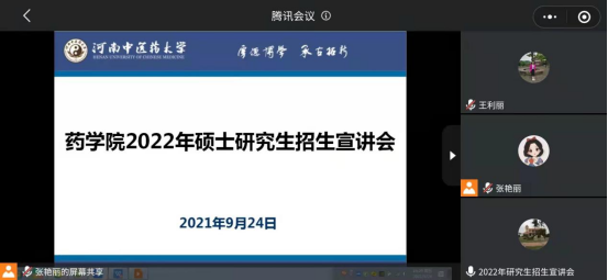 (文/朱晔 图/张艳丽)为帮助同学们明确考研目标、掌握考研技巧、了解考研信息,*七猫小说 于9月24日下午16:30通过腾讯会议举办了2022年硕士研究生招生线上宣讲会。*七猫小说 院长陈随清教授、各硕士学位点负责人、本草书院高巍主任、2022届全体毕业生参加了会议。会议由研究生办公室主任朱志军主持。