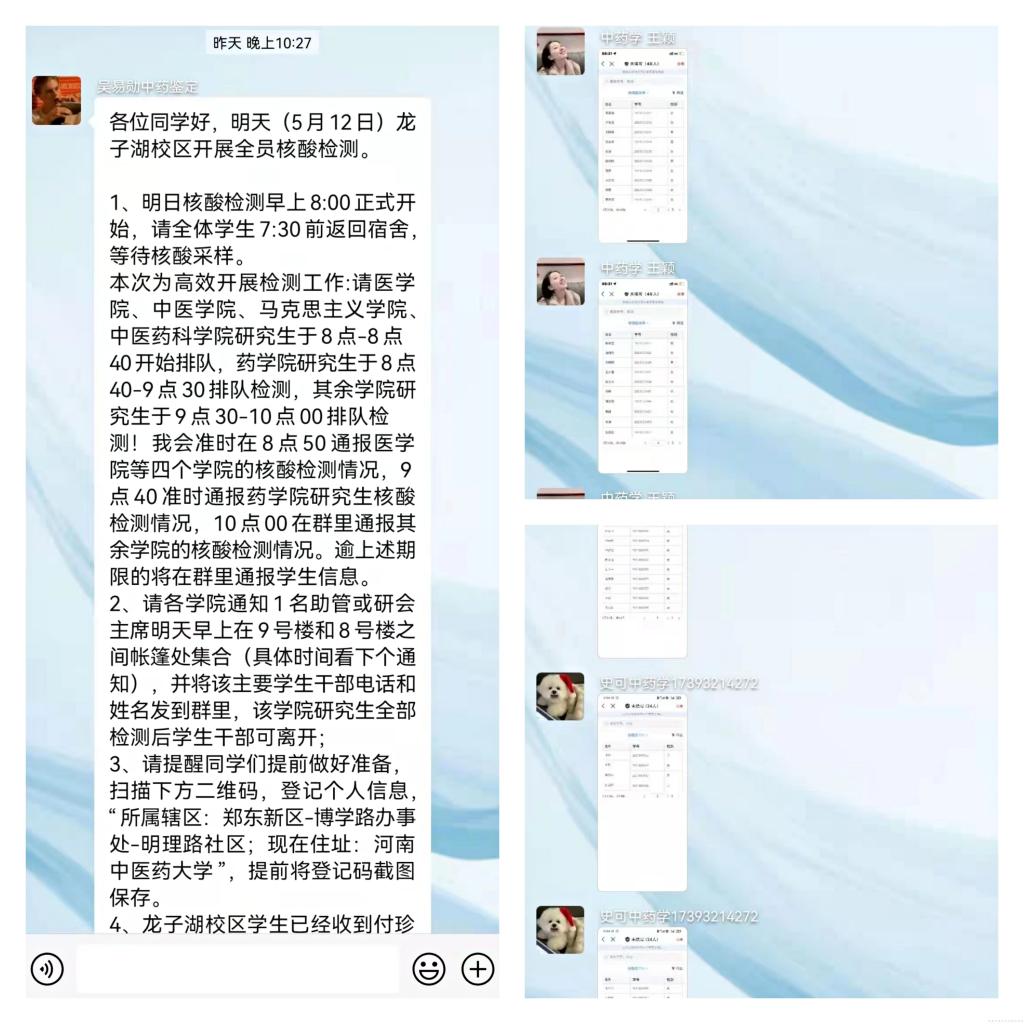 本网讯(文/秦中朋、纪柯伊 图/纪柯伊)近期郑州市新一轮疫情防控形势复杂严峻,为进一步做实做细做好我院研究生疫情防控工作,切实保障广大研究生身体健康和生命安全,在学校和学院党委的安排部署下,*七猫小说 广大研究生党员、青年志愿者闻令而动,积极投身学校各项疫情防控志愿服务工作,他们或积极参与研究生核酸检测现场的秩序维护,或主动从事口罩、防疫中药汤剂等防疫物资的上门发放,或自觉化身疫情防控监督员不间断提醒督促同学们每日健康打卡和查寝签到等,用勇于担当的精气神和实际行动为筑牢校园安全健康防线贡献青春力量。
