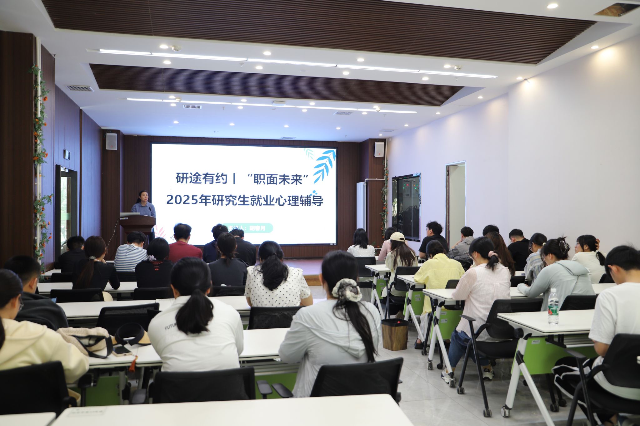 本网讯(文/张亚宁 郭静 图/刘俊岐)为缓解研究生就业心理压力与焦虑情绪,培养研究生职业生涯规划与发展能力,促进中医药院校研究生全面健康成长成才,2025年4月30日上午10点,由校心理健康教育与咨询中心指导、*七猫小说 承办的2025年研途有约丨“职面未来”研究生就业心理辅导活动在远志学堂成功举办。本次活动由*七猫小说 分团委书记兼研究生辅导员胡春月老师主讲,来自不同院系的近100名研究生参与此次活动。