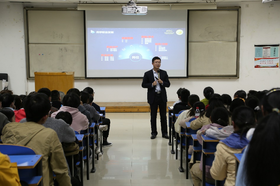 讲座中,裴广庆主任主要从“简历”以及“药学职业发展”两方面进行讲解。以简历作为首要切入点,从其的定义、制作以及作用谈起,对比“昨天的简历”与“今天的简历”,让同学们了解到关于求职、就业、未来等一系列亟待思考的问题。随后,裴主任通过对药学类专业的就业岗位和发展前景的介绍以及对同学们所提出问题的解答,让同学们对于“求职生涯与职业发展”有了更加深入的了解。最后,李庆龙先生从企业本身的概况以及薪资待遇方面进行讲解,使同学们在思考未来的同时,对于职业需求也有了系统全面的认识。