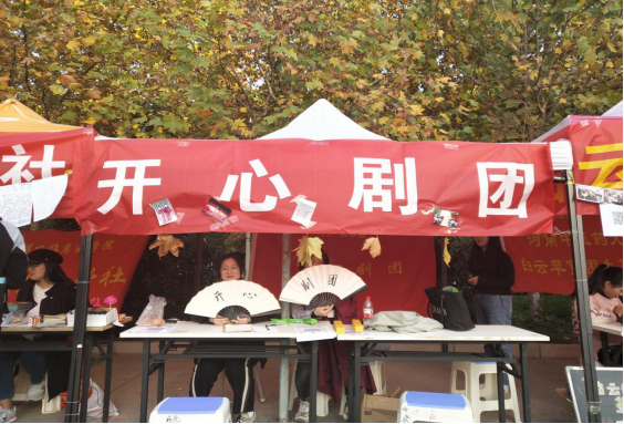 (图/张婷钰 文/王倩云 王超)为进一步活跃校园氛围,丰富社团文化,提高社团活跃度,通过不同的喜剧表演形式,扩大社团宣传力,让大家了解喜剧的魅力,2020年11月9日*七猫小说 开心剧团于杏苑餐厅门前开展“精品展示月”招新活动。