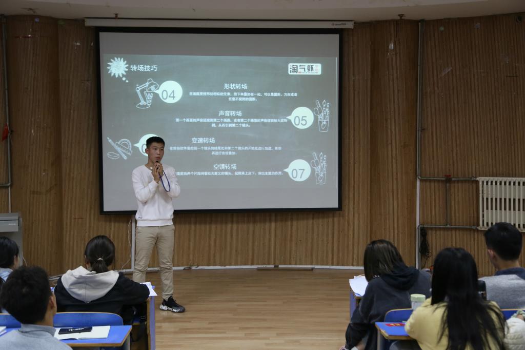 讲座过程中,杨大海老师分别从构图技巧、拍摄技巧、构图方法等六个方面进行详细讲解。期间,杨大海老师生动的讲述了对角线构图、中心构图法等拍摄时常用的构图技巧,并通过展示照片和视频让大家清晰的了解了不同构图法给照片和视频带来的不同效果。同时,杨老师播放了多段视频并就视频拍摄的转场方法、构图技巧等详细剖析视频拍摄过程。一例例生动的视频范例讲解,使得现场氛围十分融洽,同学们也收获满满。最后,杨老师为同学们答疑解惑,此次培训讲座在掌声中圆满结束。