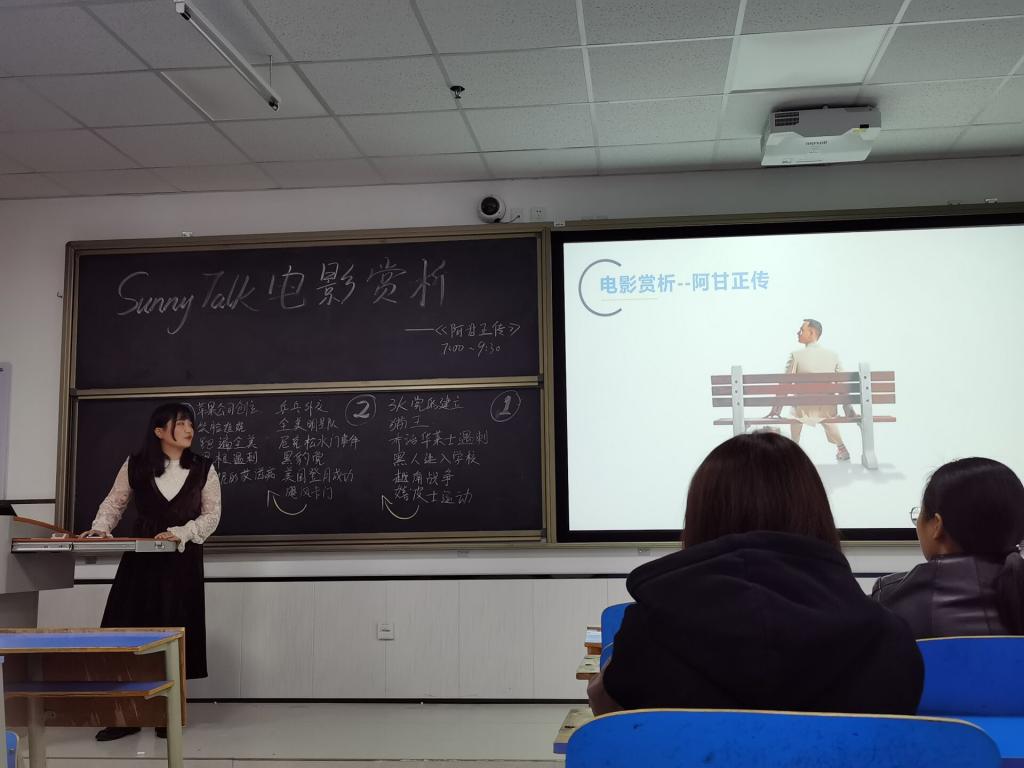 活动中,全体成员共同观看了经典励志原声电影《阿甘正传》,该影片表现出的善良与温情,触动了每一位观影同学,同学们通过学习英语原声,提高了个人口语能力,也感受到了影片传递的诚实、守信、认真、勇敢等美好品质。活动最后,全体成员用英文表达个人观后感,并表示收获颇丰。