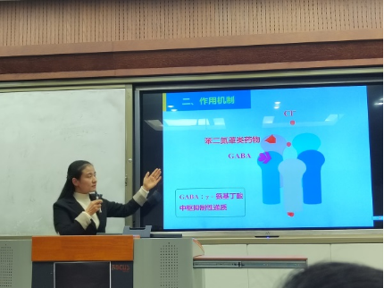 随后,刘亚敏老师就《药理学》课程中的“镇静催眠药”内容进行了授课展示。课堂上刘亚敏老师以视频插入“世界睡眠日”引出本次授课内容-镇静催眠药,激发学生的学习兴趣,并引导学生树立正确的人生观、价值观,呼吁广大同学在未来的工作生活中谨慎守法用药,做一名遵纪守法的好医生,为人民健康做出更好的服务。