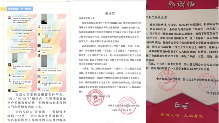 本网讯(文/图 范锡玲)开学伊始,喜报频传,项城市、鲁山县等多地政府陆续向我院发来表扬信和感谢信,表扬我院多名优秀研究生学子积极投身“返家乡社会实践”,寒假期间发挥专业所长为当地疫情防控和基层工作做出了突出贡献,对学校和学院的研究生思政育人成效和培养教育表示感谢。