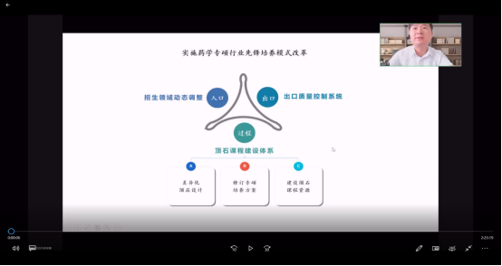 8月3日采取线上线下相结合的名师面对面活动,会议邀请了中国药科大学研究生院副院长胡庆华教授,就专业学位培养经验,从培养方案的制订、培养管理、导师参与、校外导师兼职导师定位、基地建设、全程过程质量控制体系构建等方面,做了专题报告,进一步强化我院专业学会培养以应用型高级人才为导向的理念。同时邀请合作培养基地导师,河南羚锐制药集团副总经理李磊,以《浅谈专业专业学位研究生培养及中药产业现代化》为题,介绍了如何进行专业学位研究生实践环节指导和当前中药产业现状。