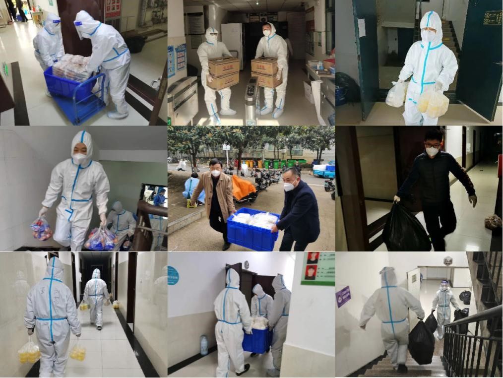 同心战“疫”,暖心暖胃。为了让3000名学子都能按时吃上热饭热菜,老师们拉起小推车快步奔向食堂,一日三餐,每餐都要把数以吨计的饭菜抬上楼,等学生们用完餐再把垃圾收下来。穿上防护服,他们化身“大白”送餐员,快步奔走于寝室间,只为让学生们吃上一口热乎饭菜。脱下防护服,他们是坐在电脑前上网课的老师。在奔波送餐之余,老师们讨论最多的是如何优化送餐路径、提升送餐效率,老师们都为送饭“卷”了起来……