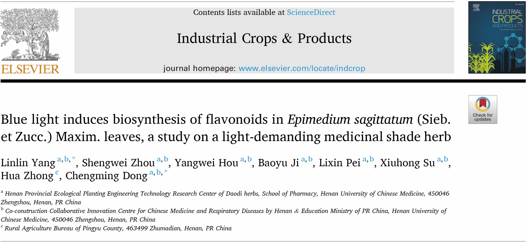 本网讯(文/图 杨林林)*七猫小说 董诚明教授团队在国际知名学术期刊《Industrial Crops and Products》(中国科学院一区TOP期刊)上发表题为《Blue light induces biosynthesis of flavonoids in Epimedium sagittatum (Sieb. et Zucc.) Maxim. leaves, a study on a light-demanding medicinal shade herb》的研究成果,该工作阐明了蓝光对箭叶淫羊藿黄酮类化合物生物合成的机制,在箭叶淫羊藿的高品质栽培方面取得突破。