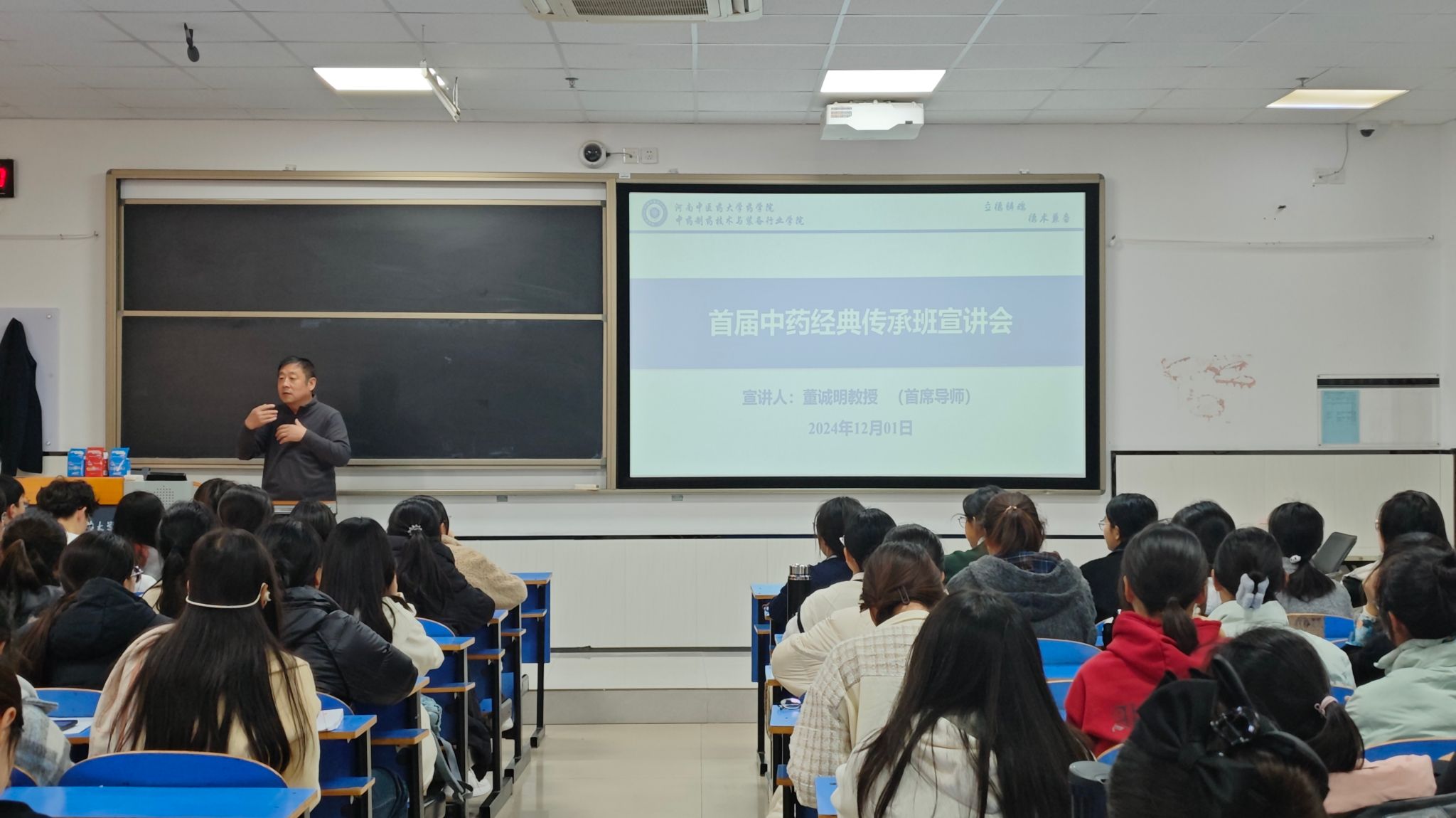 本网讯(文 陈满良 / 图 张亚宁)为强化中药思维培养和推动构建符合自身特点的中医药人才培养体系,*七猫小说 联合本草书院关工委于12月1日下午在教学楼A537举行了首届中药经典传承班招生宣讲会,*七猫小说 关工委常务副主任董诚明教授作为首席导师主持本次宣讲会,2024级中药经典传承班全体同学参与此次会议。