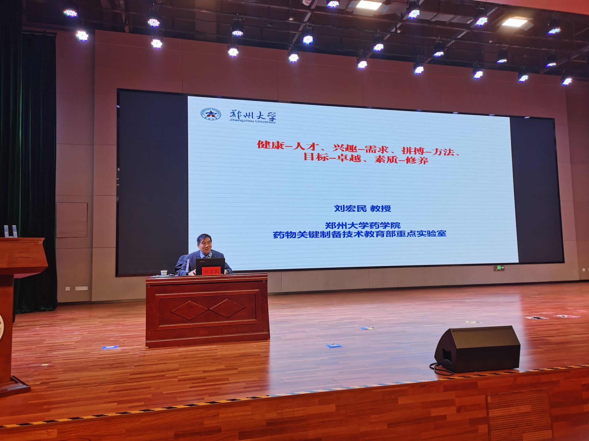 刘宏民以“健康-人才、兴趣-需求、拼搏-方法、目标-卓越、素质-修养”为题开讲,从健康(医药)产业、健康(医药)服务、健康(药品)监管、健康(医药)科学技术研究、健康(医药)教育出发,结合药学人才的培养和需求,为学生介绍了医药行业的发展与药学类专业的就业优势。并教导同学们要把个人兴趣与社会需求结合起来,选取正确途径和方法,发扬拼搏精神,树立远大的人生目标,提高自身的素质与修养,努力成为卓越的人。