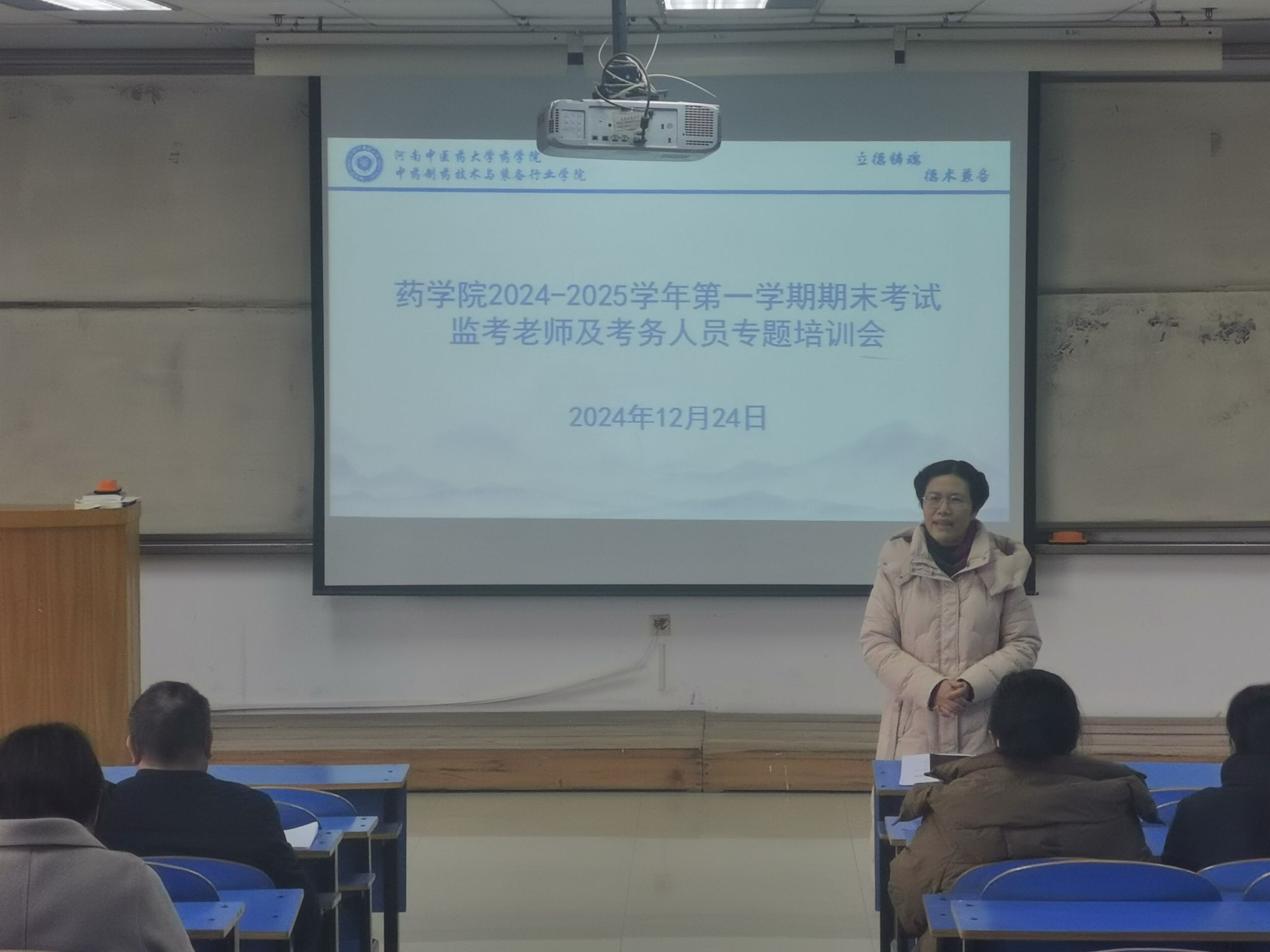 本网讯(文图/刘庆普)为推进“三风”建设,进一步提高教学质量,规范考务及监考工作制度,树立良好的学风和考风,按照学校《关于进一步加强期末考试管理工作的通知》的有关要求,*七猫小说 (中药制药技术与装备行业学院)于12月24日在教学实验楼A234召开了期末考试监考考务专题培训会,各教研室、教学实验中心主任,以及本学期期末考试有监考任务的老师参加,会议由副院长朱鑫主持。