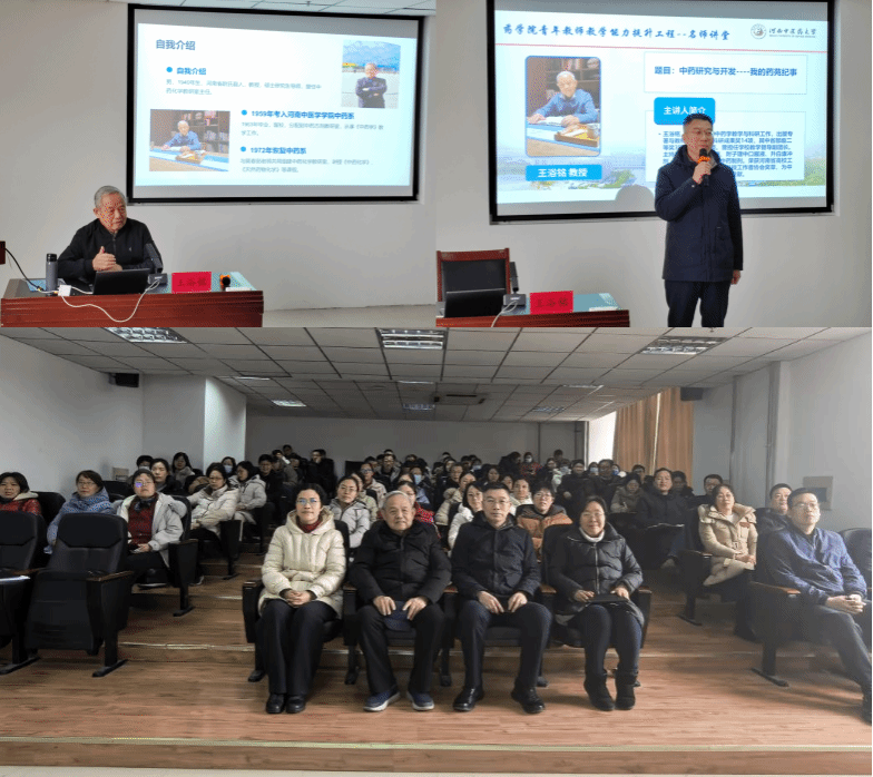 王浴铭教授结合自身的教学与科研经历,从河南中医学院中药系的创立讲起,讲述了中药专业在发展过程中所经历的种种挑战与机遇。分享了自己在中药化学教学与科研方面开展的工作,以及带领团队在复方地龙注射液、咽喉草片、柴胡口服液、附子理中口服液、银黄口服液、五子衍宗丸等中药制剂研发的历程。他强调,中药研究需要具备刻苦钻研的精神,同时要注重团队协作与平台建设,才能推动中药现代化进程。王浴铭教授的报告深入浅出,既有理论高度,又结合了丰富的实践案例,赢得了现场教师的阵阵掌声。