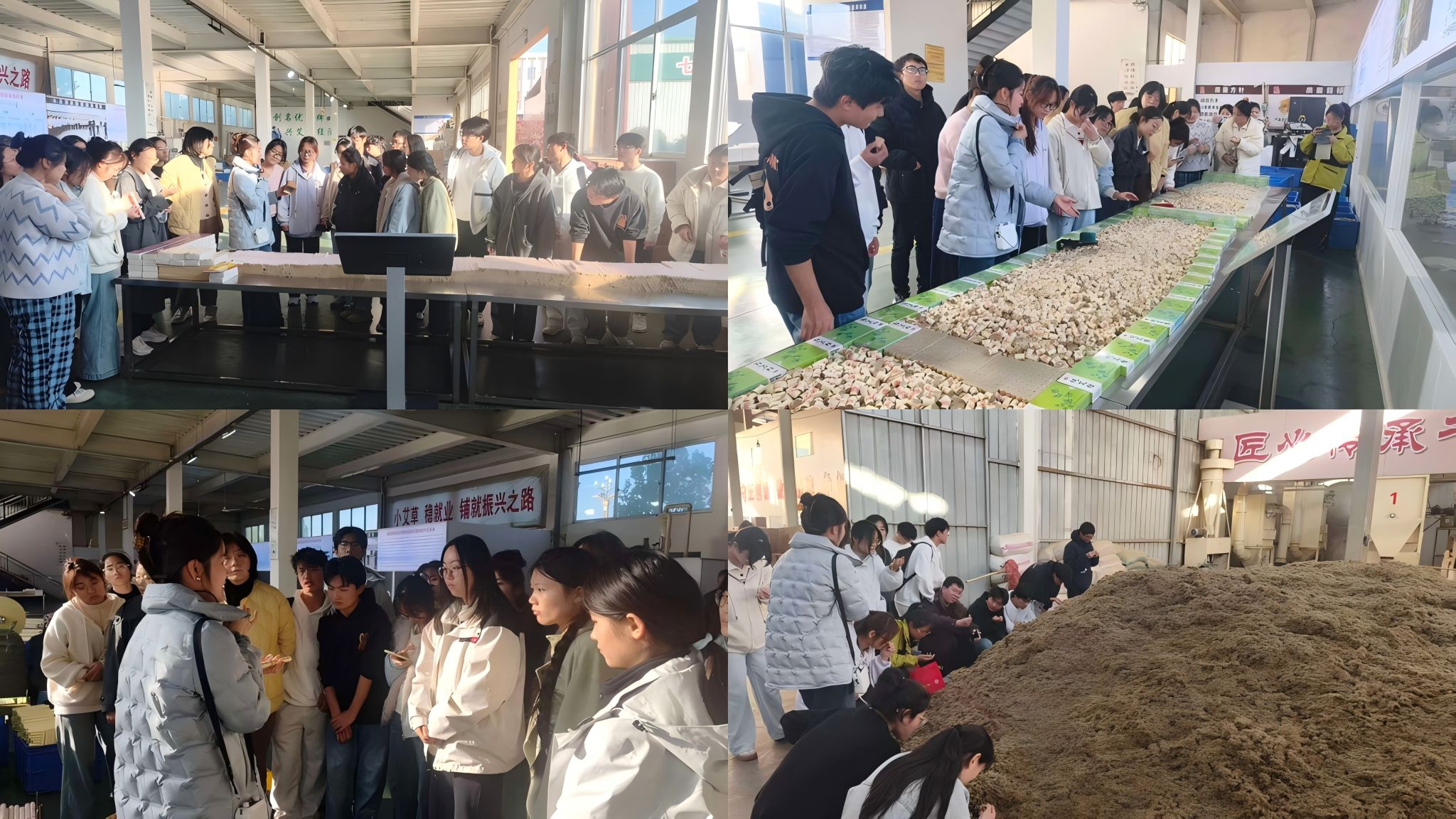 随后,师生一行走进南阳药益宝艾草制品企业,实地参观艾叶的采收、加工与仓储流程,并深入了解艾草大健康产品的开发与应用。从艾条、艾柱到艾草精油、艾灸贴等系列产品,同学们真切感受到一根艾草如何通过现代工艺“链”起大健康产业,也对中医药资源的综合开发有了全新认识。