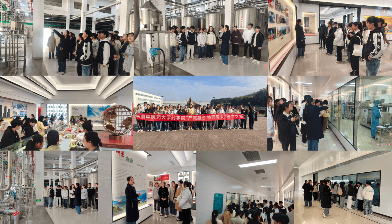 在仲景宛西制药,大家依次拜医圣、参观企业百草园、标准化仓储中心、六味地黄丸和中药配方颗粒生产车间。通过近距离观察中成药从原料到成品的全程质量控制与自动化生产流程,同学们对中药现代化、标准化有了更加系统的理解。了解宛西制药经营理念、发展历程、技术优势与创新发展,坚定对中药专业的认同与信心。