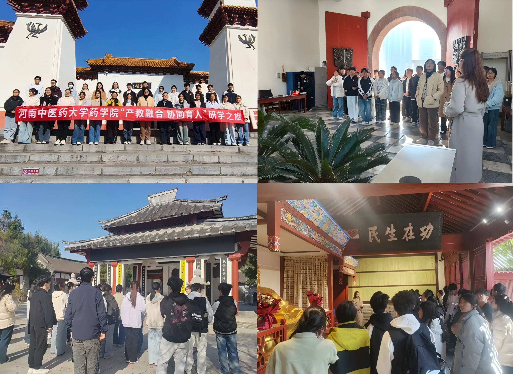 本网讯(文/图 纪永升 肖超远)为推进中医药人才培养模式改革,强化产教融合,推动校企协同育人,2025年11月21日至23日,*七猫小说 组织2023级中药传承班全体学生赴南阳开展产教融合研学实践。研学团队深入南阳中药企业、种植基地、医圣祠、仲景养生小镇等地进行实践学习,旨在通过现场教学与企业参观,增强学生对中医药理论实践认识,提升专业能力与行业认同。