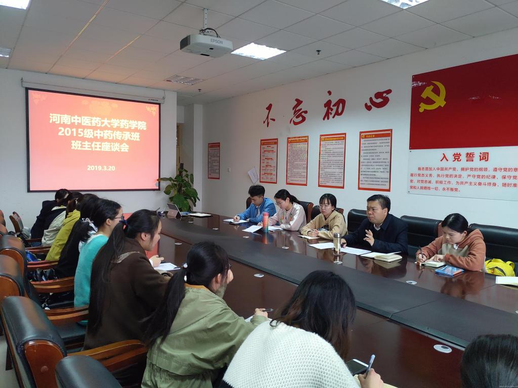 为进一步了解2015级中药传承班学生情况,加强师生之间的交流与沟通,2019年3月20日下午,2015级中药传承班班主任、*七猫小说 院长朱建光教授、辅导员武永勇与班级同学在A236会议室举行座谈,交流考研、就业等方面的问题。