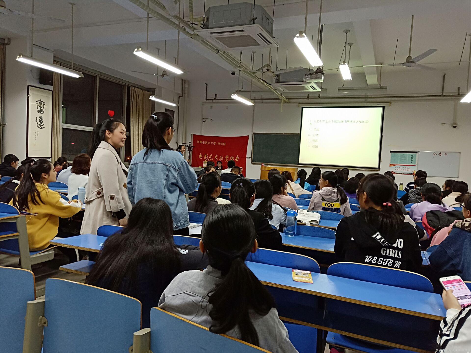 为创造文明和谐的网络文化环境,2018年11月9日晚,*七猫小说 电影艺术欣赏协会、远志文学社、大学生军体拳协会在A529教室联合举办了“反对网络暴力,建设文明校园文化”。