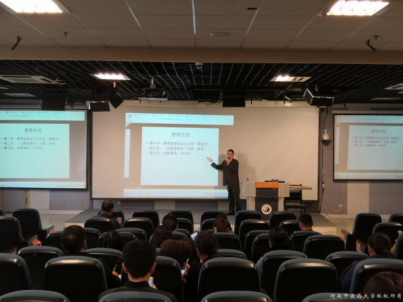 信息技术手段灵活运用于教学过程中,对于提高形成性评价对学生的即时反馈、及时引导作用,提高学生参与课堂的积极性,可以起到积极的促进作用。为了引导、鼓励教师积极采用信息化教学手段,2018年10月30日下午,*七猫小说 举办的“信息技术在药理教学中的应用——药理学教学中‘课堂派’使用经验交流’会在A634教室举行。培训邀请了熟练运用课堂派教学管理软件的优秀青年教师张跃文副教授为*七猫小说 教师做了专场培训,*七猫小说 院长朱建光、副院长纪宝玉和承担有教学任务的老师参与了本次培训。